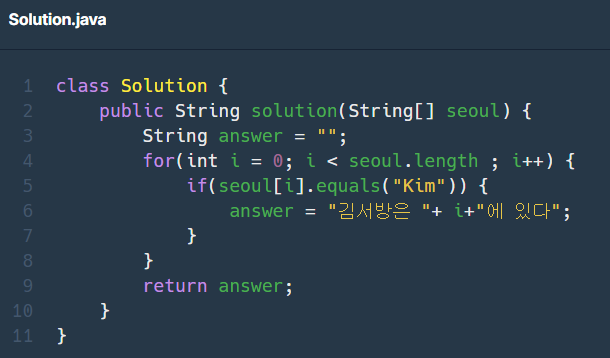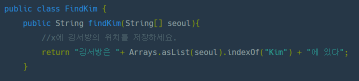 for문을 사용하지 않고 indexOf를 이용해 김서방의 위치를 찾음