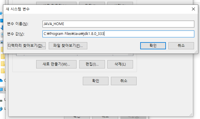 변수 이름 : JAVA_HOME