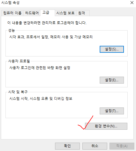*그냥 윈도우 검색창에 환경 변수 검색해도 나옴