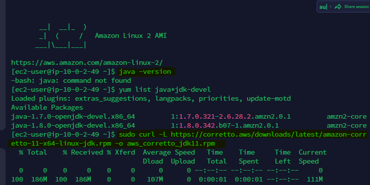 - sudo curl -L https://corretto.aws/downloads/latest/amazon-corretto-11-x64-linux-jdk.rpm -o aws_corretto_jdk11.rpm