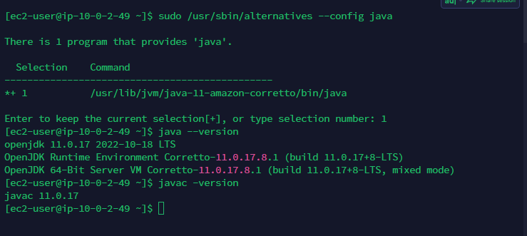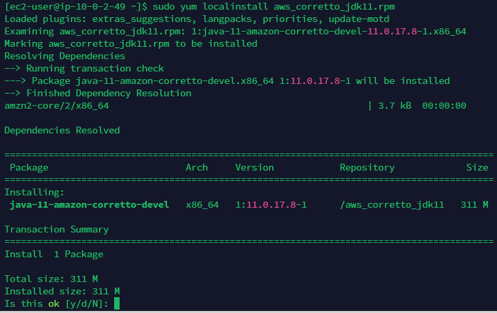 - sudo yum localinstall aws_corretto_jdk11.rpm