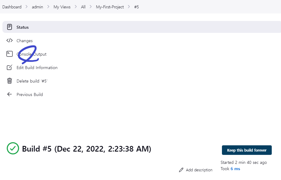 Console Output 클릭