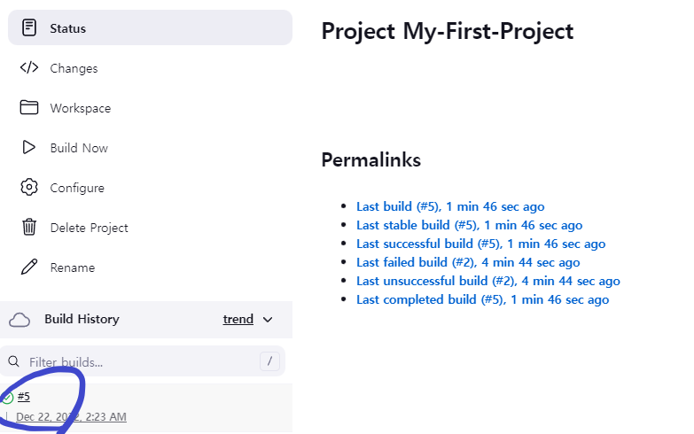 빌드 성공한 내역 클릭