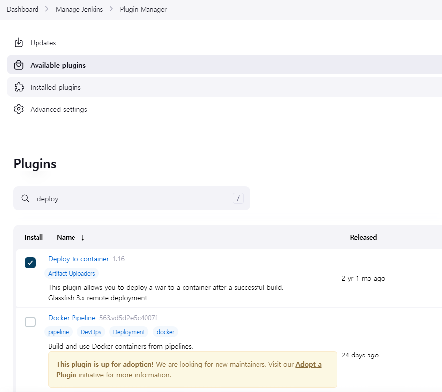 1. Deploy to container 플러그인 설치