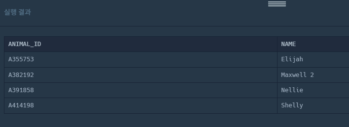 1. 동물 이름에 "EL"이 들어가는 개의 아이디와 이름