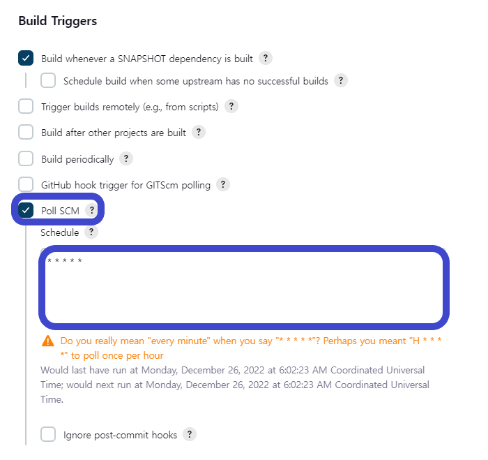 Build Triggers(빌드 유발) Poll SCM 클릭